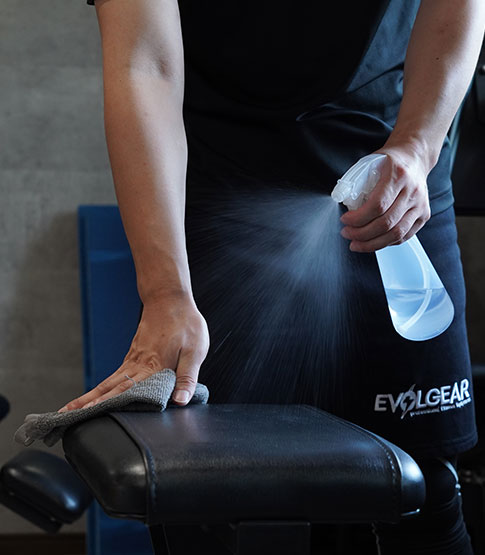 トレーニングマシンは使用後に消毒しています。