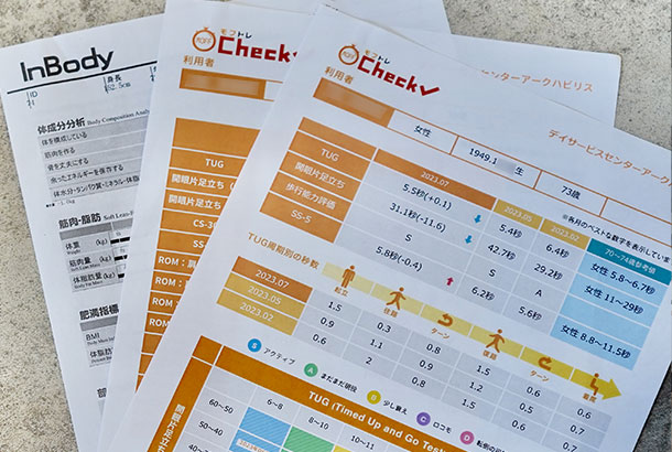定期的にプロ仕様の体組成計「InBody」で筋肉量、「モフトレ」で運動結果などのチェックを実施しています。どちらも数値で見える化してくれるもので、やる気アップにつながります。