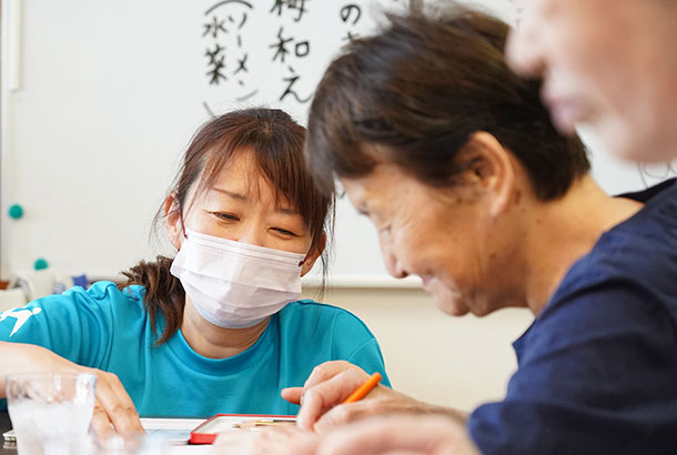 ご自宅までスタッフがお迎えに伺い、同年代の方達で日中の時間を有意義に過ごしていただく為に入浴・食事・趣味活動・身の回りのお世話をお手伝いさせていただきます。